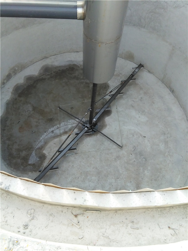 该驱动装置驱动刮泥器绕沉淀池的中心旋转。原水沉淀到沉淀池中后,上清液从溢流堰板排出。设计了中央驱动刮泥器。沉淀在储罐底部的污泥由中央驱动刮泥机驱动。在对数螺旋曲线刮刀的驱动下,它沿池底缓慢流到中央集泥池,并通过泥浆管排出,同时池表面的浮渣集中在池底之间的区域。浮渣刮板和浮渣隔板。当工作桥通过浮在水池表面上的浮渣排出筒时,浮渣排出筒被压在液面下方,浮渣穿越。排出筒从水池中排出。