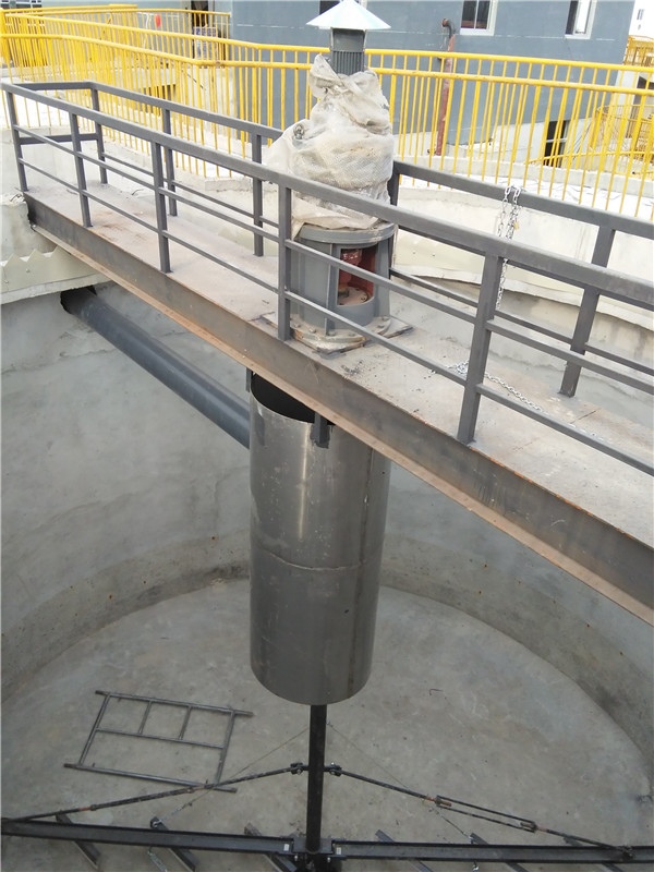 (4)主梁由方钢制成,具备很高的结构强度。中央传动刮泥机的拉丝采用热镀锌喷后处置,防腐性能强,主梁也可以直接浇筑混凝土,节约投资。